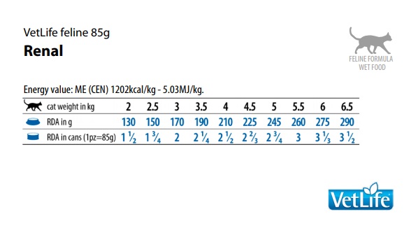 Η Farmina Vet Life Renal είναι μια πλήρης διαιτητική τροφή για γάτες, σχεδιασμένη για να υποστηρίξει την νεφρική λειτουργία σε περίπτωση χρόνιας ή προσωρινής νεφρικής ανεπάρκειας. Αυτή η διαιτητική τροφή περιέχει χαμηλές συγκεντρώσεις φωσφόρου και μειωμένη περιεκτικότητα σε πρωτεΐνες, ωστόσο οι πρωτεϊνες είναι υψηλής ποιότητας.