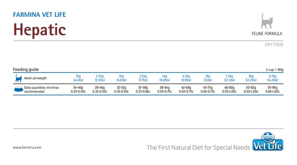 Η Farmina Vet Life Hepatic είναι μια πλήρης ζωοτροφή για γάτες, η οποία ενδείκνυται για την υποστήριξη της ηπατικής λειτουργίας σε περίπτωση χρόνιας ηπατικής ανεπάρκειας. Αυτή η τροφή έχει μια μέτρια συγκέντρωση πρωτεΐνης υψηλής ποιότητας, μια υψηλή συγκέντρωση απαραίτητων λιπαρών οξέων και μια υψηλή συγκέντρωση εύπεπτων υδατανθράκων.